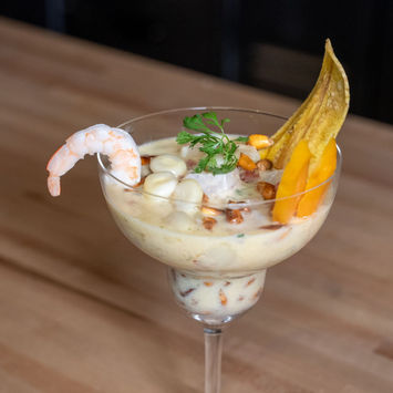Fresh fish, shrimp, octopus, and squid marinated and cured in lime with onions and ají